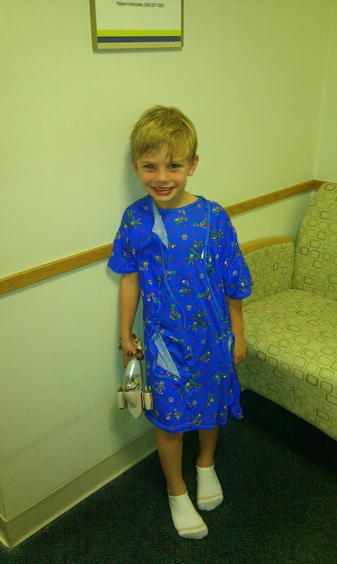 We met with Dr. Liu and he was awesome! We explained Junie's situation and he thought it was either strictures or intestinal adhesions. He thought the first step would be an Upper GI with a Small Bowel Follow Through. We put on this cute outfit.